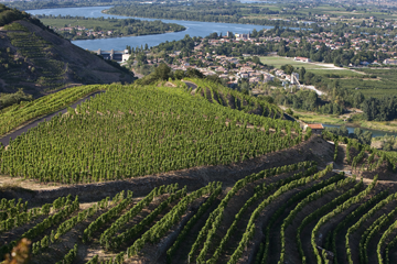 Sur la rive droite du Rhône, sur des pentes abruptes formant de superbes balcons, la Syrah s’épanouit et produit des vins d'une intense richesse aromatique et au palais complexe et fin.